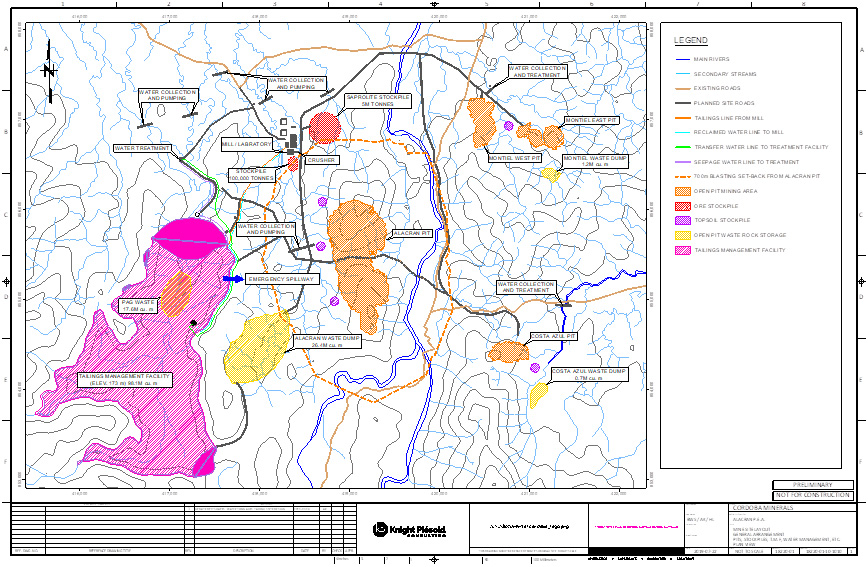 Cordoba holds exploration licences covering 149 square kilometres and has an additional 2,491 square kilometres of exploration licenses under application. Cordoba is working to complete the Mining Technical Work Plan (Programa de Trabajo y Obras or “PTO”) and the Environmental Impact Assessment (“EIA”) for the Alacran deposit, required prior to receiving approvals to begin construction.