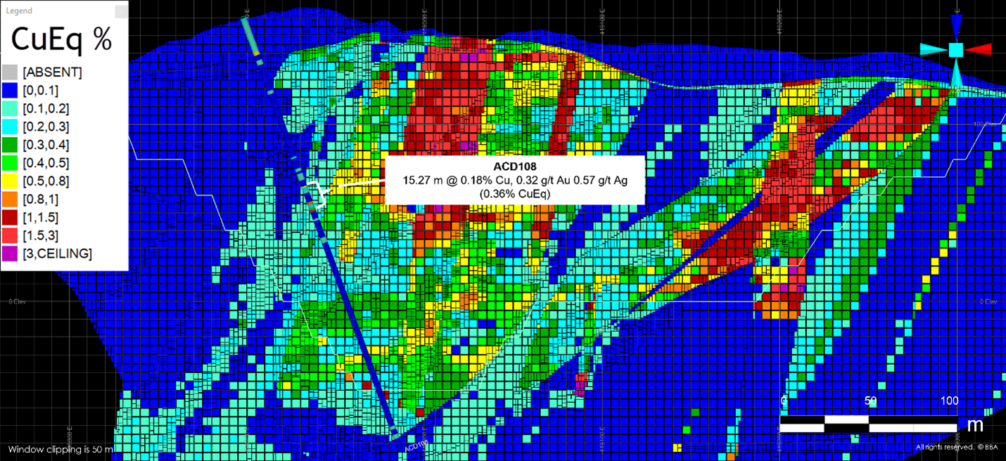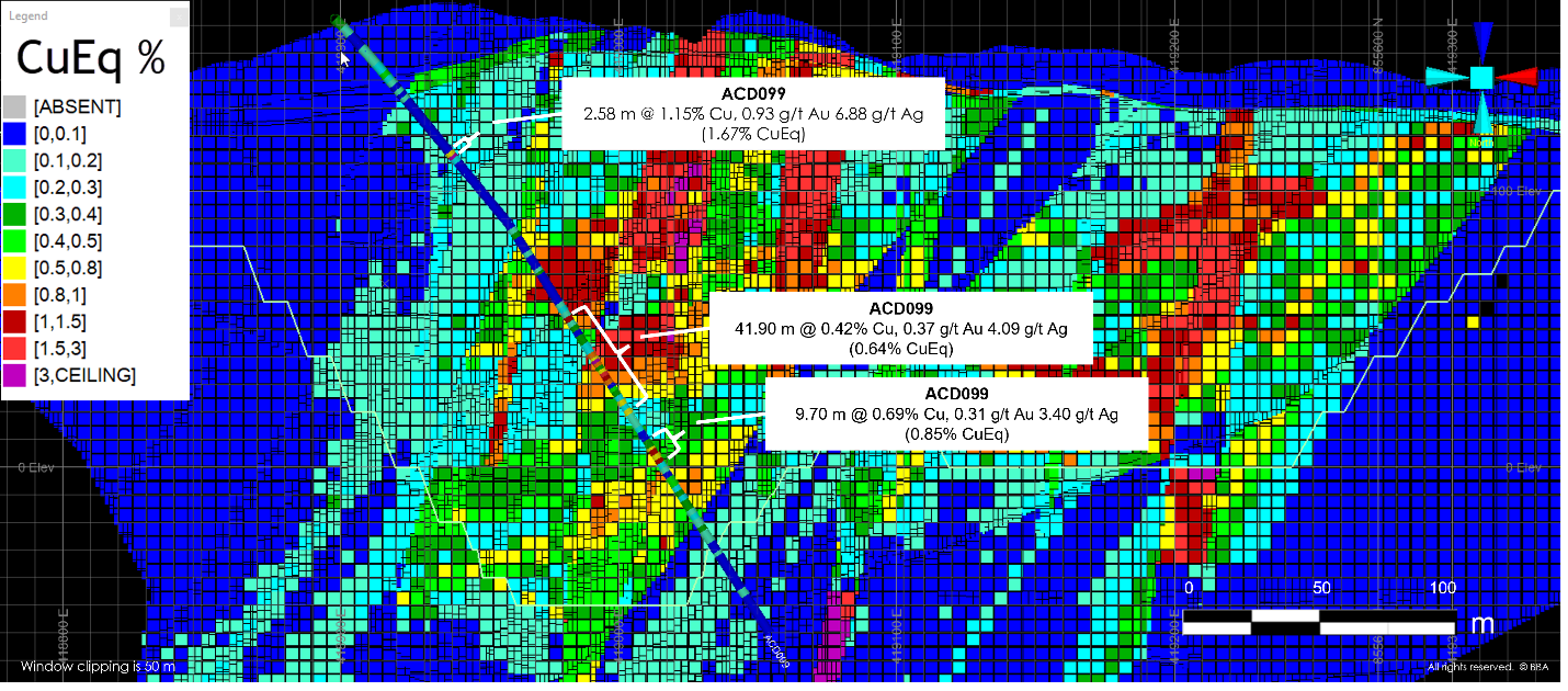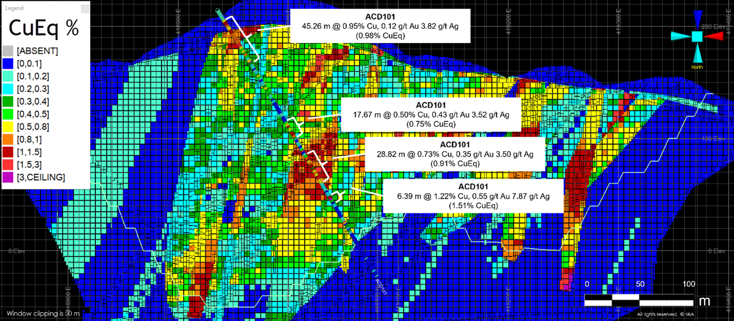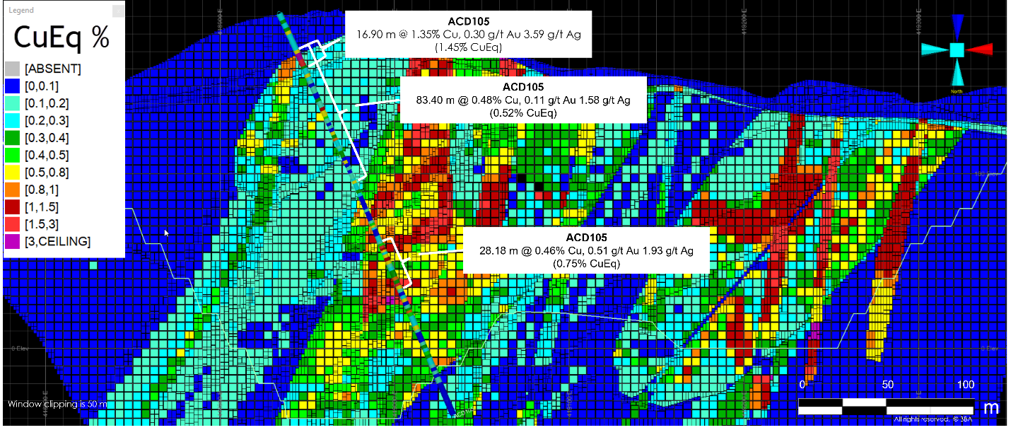 Hole ACD109 Reports 30.48 Metres of 2.43% Copper Equivalent1 (1.87% Copper, 1.00 g/t Gold and 16.69 g/t Silver)